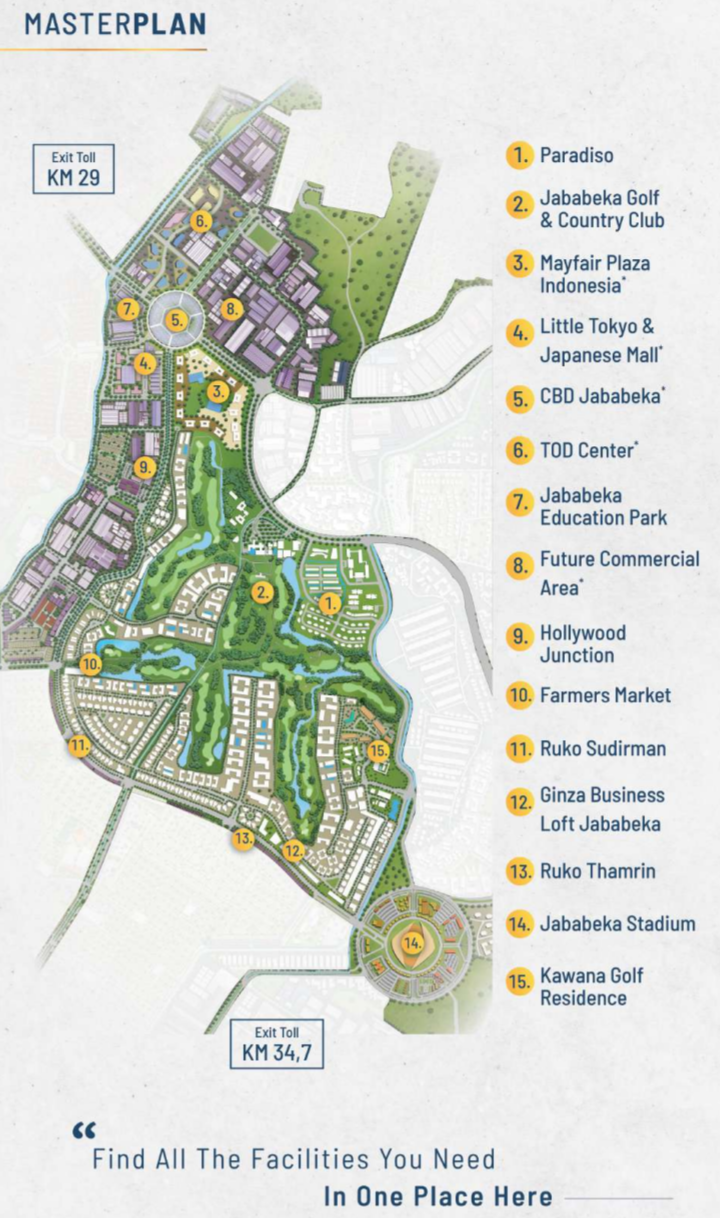 Sebuah mahakarya dari Jababeka Residence dan Creed Group Jepang, satu-satunya tempat tinggal golf di Indonesia.Satu-satunya tempat tinggal golf dengan akses langsung ke 86 Ha Jababeka Golf Resort di Cikarang.Potensi investasi yang tinggi: